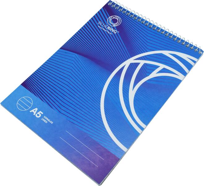 Modern pasztell színű betét dupla spirállal, 60 lap. A4-es formátum, perforált papír súlya 70 g/m2, bélelt kezelés. Nagyobb, 5 db-os csomag. A szín kék.
