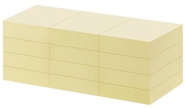 Office Depot 38x50mm újrahasznosított öntapadós 12db sárga jegyzettömb - 80%-ban újrahasznosított alapanyagból - 100 lap/tömb - 12 tömb/csomag - Méret: 38 x 50 mm - Szín: sárga