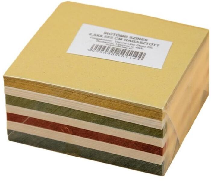 Színes papírból készült, egy oldalon ragasztott, 8,5x8,5x5 cm-es méretben. Kiszerelés: 12 tömb/csom.