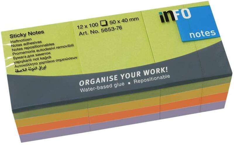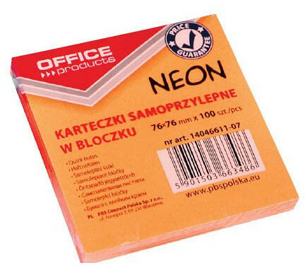 Öntapadó jegyzettömb 76x76 mm méretű címkék, neon színek, 100 lap/tömb. .