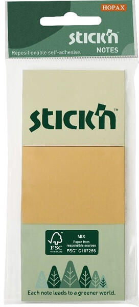 Stick`N 38x51 mm 3x100 lap (3 tömb/csomag) vegyes pasztell színek öntapadó jegyzettömb Környezetbarát, FSC minősített - felelős erdőgazdálkodásból származó papírból készült. 100% vízbázisú ragasztó, visszaszedhető, ragasztómaradvány nélkül.