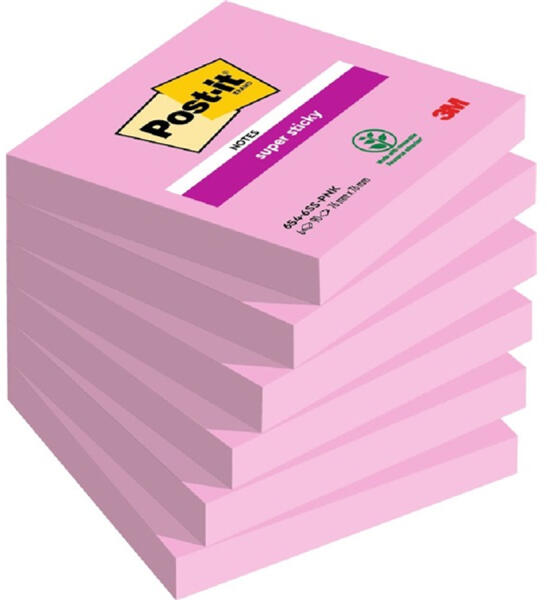 A Post-it® Super Sticky öntapadós jegyzettömbök kétszer erősebb tapadással rendelkeznek, mint az eredeti Post-it® jegyzettömb. Rendkívül erősek, sokoldalúak, és a különböző lágy, világos és élénk színeik kiemelik az üzenetét. Az élénk színű öntapadós jegyzetlapok ideálisak a függőleges és nehezen tapadó felületekhez, és tökéletesek jegyzet, üzenet, vagy e