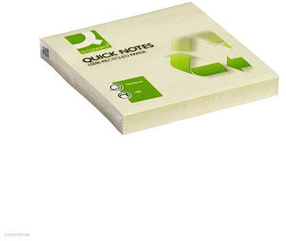 Q-Connect öntapadós halvány sárga színű jelölőcímkék. 100%-ban újrafelhasznált anyagokból készül. A címkék áthelyezhetőek. 100 lap / tömb. Mérete: 76 x 76 mm. .