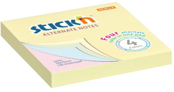 Stick`N 76x76 mm 100 lap 4 színű pasztell öntapadó jegyzettömb 4 szín egy jegyzettömbben