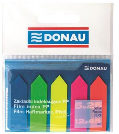 DONAU Jelölőcímke, műanyag, nyíl forma, 5x25 lap, 12x45 mm, neon szín Jellemzők:segítségével rámutathat a leglényegesebb információkraextra vékony PP anyagírható felületélénk, fluoreszkáló színek