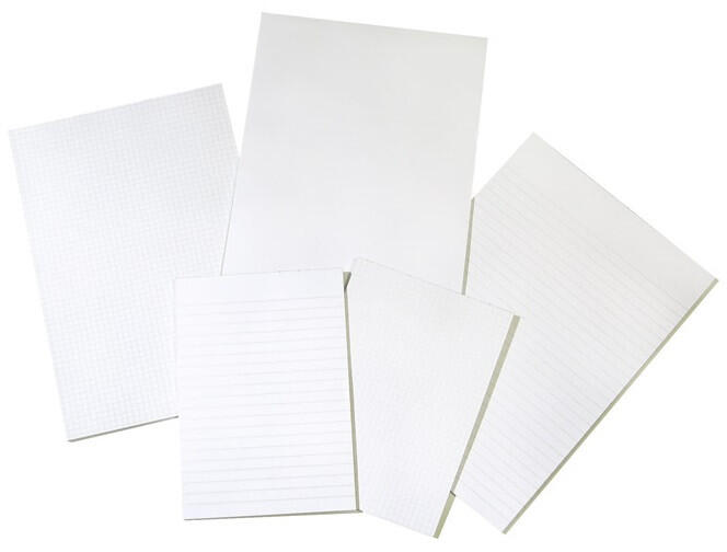 Fehér papírból készült, felső részén ragasztott Fortuna jegyzettömb fedlap nélkül.