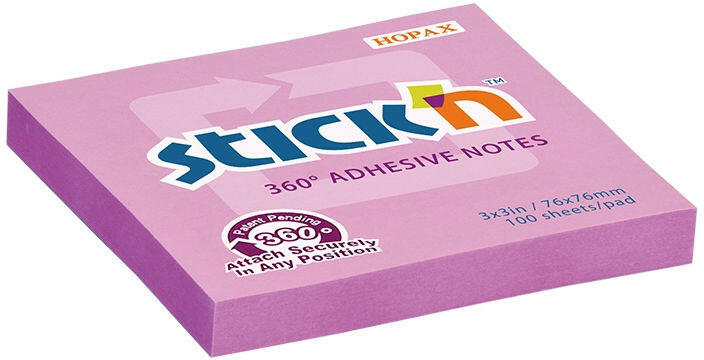 A Stick’n 360°-ban tapadó jegyzettömbök. Az öntapadó oldalon az újrapozícionálható ragasztó négyzet formájában helyezkedik el az egyes lapokon. Megbízhatóan tapad bármely irányban, nem kunkorodik fel a széle. .