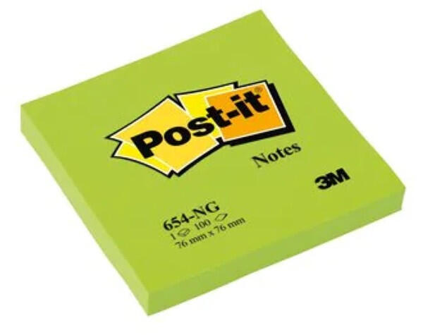 Post-it 76x76mm 100lap neon zöld jegyzettömb A Post-it® színes jegyzettömb kiemelik az üzeneteket. Ideálisak az információk rendezéséhez, ugyanakkor színt adnak az üzenetnek, és feldobják otthonát vagy irodáját. Ezek az öntapadós jegyzetlapok széles színválasztékban kaphatók, hogy igazodjanak a hangulatához és a stílusához. Az öntapadó jegyzettömb tiszta, egyszerű