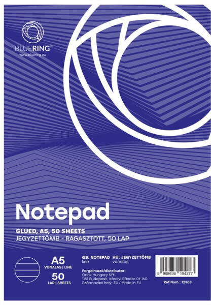 JEGYZETTÖMB A5 50LAPOS RAGASZTOTT VONALAS 15X21CM, FELÜL RAGASZTOTT, 10DB/CSOMAG, 70gr Katalóguskód: 12303GPSR: Orink Hungary Kft. ; H-1151 Budapest, Károlyi Sándor út 160. ; info@orinkhungary. hu; https://orink. hu/