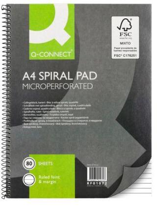 College Q-Connect jegyzettömb fémspirállal A4-es formátumban, 80 lappal, oldalán spirállal, vonzó kivitelben. Nagyobb, 10 db-os csomag. Módosítás: lineáris Lapok száma: 80 lyukasztás 4
