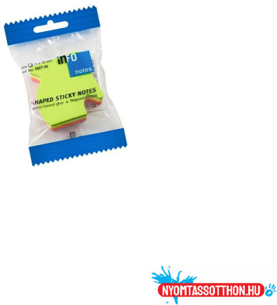 Jegyzettömb öntapadó, nyíl alakú, 67x68mm, 200lap, Info Notes Ragad papíron és más felületeken Áthelyezhető, ragasztónyomokat nem hagy maga után A tömbről könnyen eltávolítható Vízbázisú, oldószermentes ragasztó Nyíl alakú Neon színekben