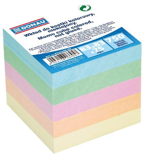 Nem ragasztott, környezetbarát kockatömb pasztell vegyes színekben. Papír tartó utántöltésére. Feljegyzésekhez, emlékeztetőkhöz vagy üzenetek hagyására irodában vagy otthon egyaránt használható.