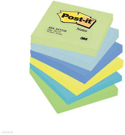 A Post-it® Álmodozó színek szivárványcsomag inspiráló színeivel a gondolatai a földtől az égig szárnyalnak: A fű zöldje, az ég kékje, a nap sárgája, egy pillanatnyi megnyugvást adnak az elmének. 76 x 76 mm lapok 100 lapos tömbök, 6 tömb/csomag .