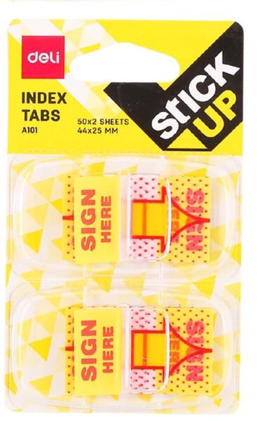 Olyan műanyag öntapadós indexet keres, amely rendszerezi dokumentumait, és feladja az elveszett lapokat a házban vagy az irodában? Nagyon praktikus terméket szeretne dokumentumok rendszerezéséhez? Olyan terméket ajánlunk, amely minden igényt biztosan kielégít, mégpedig a Deli Stick Up műanyag ragasztó indexeket, amelyek 44x25 mm-esek, és egy csomagban 2x50 lap. A jegyzeteket és