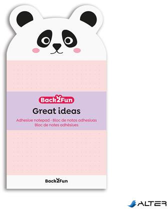 Mókára fel! A Back2Fun kollekció a boldogság és jó hangulatát érzését sugározza felénk. Ezek a szupertrendi termékek különlegessé varázsolják a mindennapokat és valóra váltják az álmokat. És tudod mit? Már neked is lehet saját Back2Fun kollekciód. Mire vársz? Csatlakozz Te is a mókához! Pandás öntapadó jegyzettömb - 60 lapos - 90g/m2 papírból - pontozott lapok -