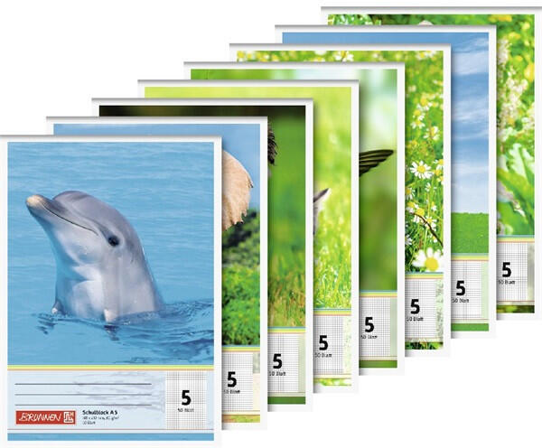 Brunnen A5 80 lapos ragasztott kockás jegyzettömb A5-ös méretű, kockás, ragasztott jegyzettömb. Nyolc fajta állatos mintával. 80 lapos, 80 g/m2. A minta nem választható.