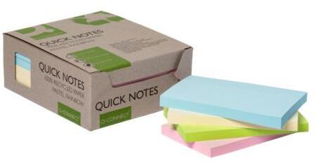 Öntapadós jegyzetfüzetek 100%-ban újrahasznosított papírból, súlya 70 g/m2. 12 db-os kiszerelésben négy szivárvány színben, 3 db papírdobozban. Méretek 127 x 76 mm.