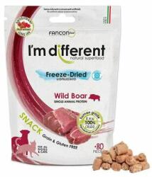 I´M DIFFERENT SNACK vaddisznó - fagyasztva szárított finomság, 40 g, A forradalmian új, lassú eljárással készült fagyasztva szárított (fagyasztva szárított) monoprotein finomság megőrzi a "RAW" összetevők összes tápértékét, ízét és frissességét főzés nélkül, így az étel egészségesebb, ízletesebb és emészthetőbb lesz. a finomság kiváló ízletessége a fri