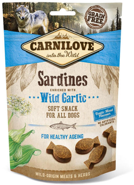 A CARNILOVE Semi Moist Snack szardínia fokhagymával további jellemzői: gabona- és burgonyamentes ízletes halat tartalmaz Nem tartalmaz mesterséges ízfokozót és tartósítószert.
