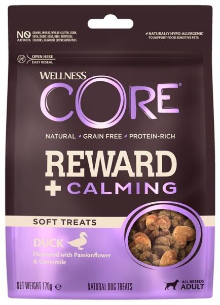 A Wellness Core Reward+ Nyugtató egy gyengéd természetes finomság ízletes fehérjével, maracujával és kamillával a nyugtató hatás érdekében. A magas fehérjetartalmú, nagyszerű ízű természetes jutalomfalatokat tartalmazó új Reward+ termékcsalád további, a kutyák számára különleges egészségügyi előnyökkel bíró összetevőkkel gazdagodott. Gabonamentes az érzéken