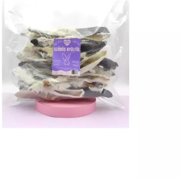 Alacsony zsírtartalmú finom rágcsálnivaló, nyúlfül szőrrel kutyád számára, mely természetes módon és gyengéden tisztítja a gyomrot és a beleket. Lepd meg vele kedvenced, értékelni fogja! A szőrös, szárított nyúlfül a Gazdik számára furcsaság/visszataszító lehet, de miért is jó neki? Kutyáink ősei a vadonban, elfogyasztották zsákmányukat szőröstül-bőröstül