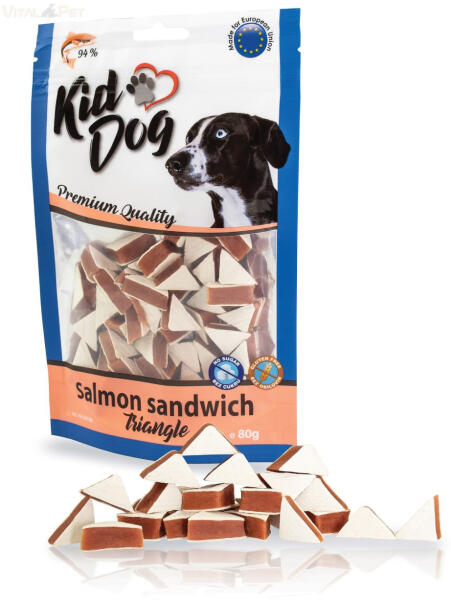 KidDog jutalomfalat kutyáknak - Salmon sandwich triangles - lazacos szendvics háromszögű 80g