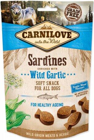 600g CarniLove Dog Semi Moist Snack szardíniás és fokhagymás jutalomfalat kutyáknak.