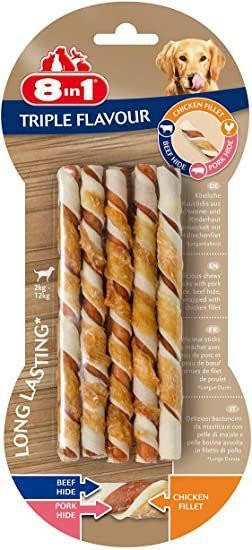 Ízletes csavart rágórudak sertés- és szarvasmarhabőrből, csirkefilével töltve készülnek, kellemes elfoglaltságot nyújtva kutyájának. Hosszan tartó rágási élményt biztosítanak a lepedék és a fogkő megelőzése érdekében. Jellemzők:- Ízletes húsos rágócsontok kis és közepes termetű kutyáknak. - A hosszan tartó rágcsálás élvezetes elfoglaltságot biztosít kuty