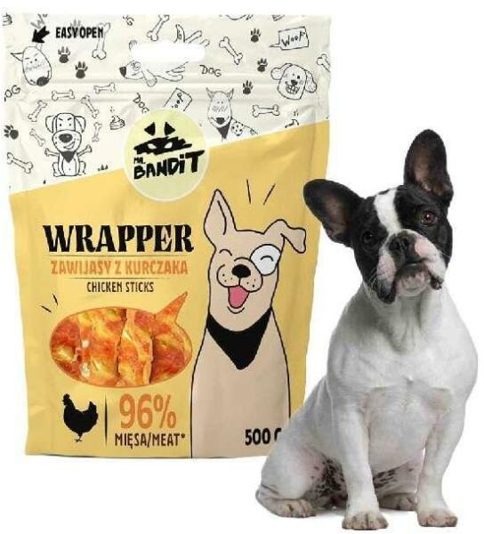 Mr. Bandit WRAPPER csirke 500gMr. Bandit húsos falat az édes bajkeverőnek! Veszélyesen finom, minden kisállat szívét elrabolja! LeírásKényeztetés a kihívásokat kedvelő kutyáknak. Az aromás csirkehússal tekert rágcsálnivaló leveszi a lábáról a bajkeverőt! A megfelelő keménysége garantálja az ízletes szórakozást!ÖsszetételMarhabőr 48,5%, csirkemell 48%, glicerin Ada