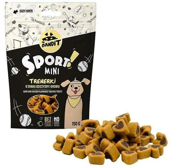 Mr. Bandit SPORT MINI TRAINING vad és csirke 150gA Mr. Bandit SPORT MINI nevelésre és kiképzésre kifejlesztett jutalomfalat. LeírásA Mr. Bandit SPORT MINI nevelésre és kiképzésre kifejlesztett jutalomfalat. A puha és aromás szív alakú, vad- és baromfi ízű falat olyan jutalom, amelyért kutyája bármit megtesz!ÖsszetételGabonafélék és növényi eredetű származékok, olajok