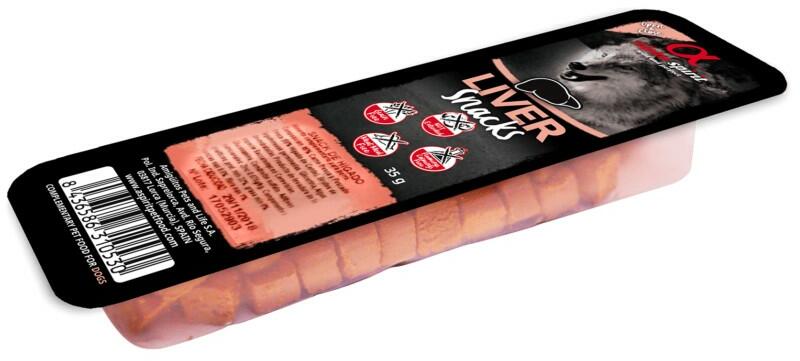 Alpha Spirit kutyakajak májkocka 35g - Termékleírás. A máj ízesítésű kutyakocka jutalomfalat 85%-ban friss húst és halat tartalmaz. Kizárólag természetes összetevőket tartalmaznak, amelyeket helyi beszállítók szállítanak. Alacsony hőmérsékleten készítjük őket, így a jutalomfalatok megőrzik tápértéküket. Csemegéink tökéletes termék kutyája kiképzéséhez. Az