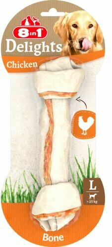 1 db 100g-os préselt (csirke)nyersbőr rágócsont melynek valódi marhahús van a közepén. Ápolja a fogakat, kielégíti a kutyák természetes rágóösztönét, és edzi a rágóizmokat. Ideális 1 éves kor fölött, nagy méretű kutyák számára (20+kg) Rágócsont csirkével – egy új íz. Ízletes csirkehús kemény, prémium minőségű nyersbőrbe hajtogatva - a rágócsont és a