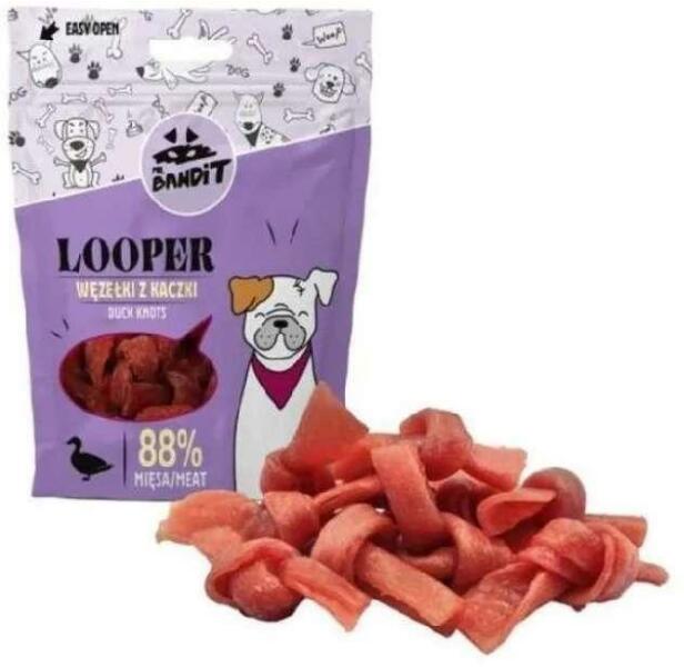 Mr. Bandit LOOPER kacsacsomó 500 gMr. Bandit húsos falat az édes bajkeverőnek! Veszélyesen finom, minden kisállat szívét elrabolja! LeírásA puha és aromás csomók tökéletes jutalomfalatok a nagy és kis kutya bajkeverőknek egyaránt. Könnyen emészthető és finom, tökéletes ajánlat a legigényesebb kisállatoknak is!Összetételkacsamell 88,9% , glicerin, burgonyakeményítő.