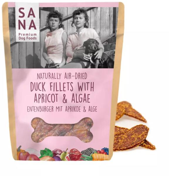 A SANADOG kacsafilé algával és sárgabarackkal tiszta, kiváló minőségű kacsahúsból és egészséges superfoodokból készült csemege kutyusod számára. A SANA saját gyárában készülnek adalékanyagok, például kukorica, búza, szója, színezékek, tartósítószerek, húsliszt vagy egyéb töltőanyagok nélkül, és óvatosan levegőn szárítják. A gondosan válogatott kacsah