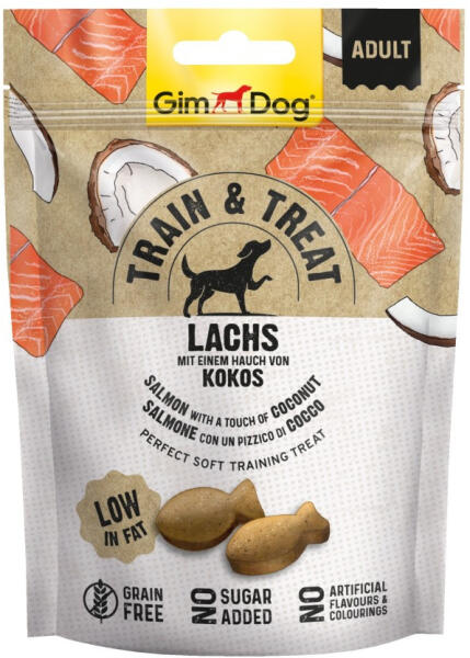 A GimDog Train & Treat Lachs & Kokos snack egy minőségi jutalomfalat lazaccal és kókusszal kutyák részére. Jellemzők : - A GimDog Train & Treat snack ideális kutyák tanítására és jutalmazására. - A kókusszal finomított lazac értékes és alternatív fehérjeforrása egyedülálló és fantasztikus íze elvarázsolja kutyáját. - A recept gabonamentes, hozzáadott cu