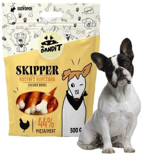 Mr. Bandit SKIPPER csirke 500 gMr. Bandit húsos falat az édes bajkeverőnek! Veszélyesen finom, minden kisállat szívét elrabolja! LeírásA finom csirkemellbe csomagolt kis kockák a legjobb rágcsálnivalók a legkisebb kutya bajkeverőknek. Az aromás és könnyen emészthető csirkehús tökéletes ajánlat a kényes kedvenceknek!Összetételkalciumcsont 50%, csirkemell 44,5%, glicerin. A