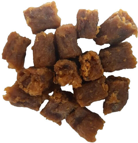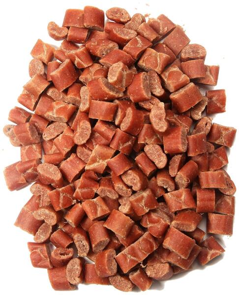 Tápláló, könnyen emészthető és ezért ideális snack az étkezések között. Kb. 1cm-es puha darabkák. Ez a termék 100%-ban természetes és minden adalékanyagtól mentes. Összetevők: nyersfehérje: 49,2%, nyerszsír: 28,8%, nyershamu: 10,7%, nedvesség: 8,7%.
