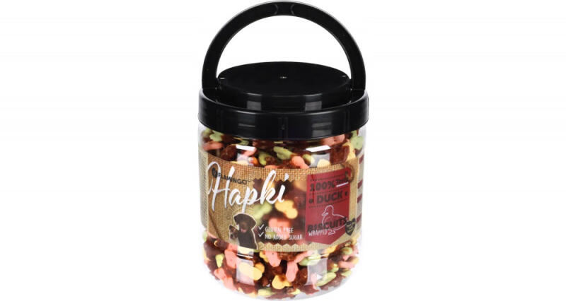 Kiegészítő állateledel kutyáknak. Kiegészítő állateledel kutyáknak. Jellemzők : Egy finom, egészséges harapnivaló kutyák számára. Gluténmentes, hozzáadott cukrot nem tartalmaz. 100% -ban ízletes, kutyája imádni fogja. Alkalmazási útmutató : Mindig biztosítson friss ivóvizet kutyájának. Naponta adható mennyiség: 20 kg max 10 db. Összetétel : Kacsa (42,7%), búzalisz
