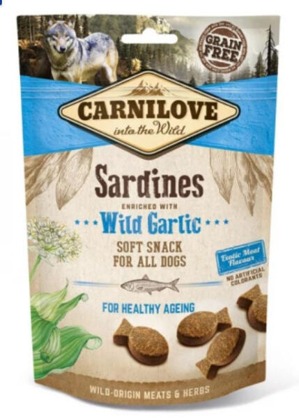 Gabonamentes, félkemény jutalomfalatok kutyák számára szardíniával és medvehagymával. Ez az ízletes szardiniás snack minden kutya számára kiváló választás. Összetétel: 35% szárított szardínia, sárgaborsó, folyékony növényi keményítő, szardínia szósz, baromfimáj szósz, kollagén, 1% medvehagyma, lazacolaj Analitikai összetevők: nyersfehérje 30%, zsír 5%, nedves