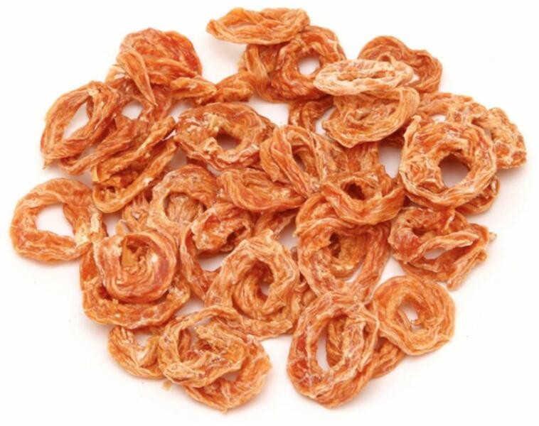 Knuckle, rágcsálnivaló csirkével [25 db], 150 g, rágcsálnivaló kutyáknak csirkehússal 0% hozzáadott cukorÖsszetevők: csirkehús (30%), rizsliszt, borsókeményítő, glicerin, tápiókakeményítő, kalcium-karbonát, édesburgonya keményítő, búzaliszt, lenmagolaj, paradicsompor, karfiolpor, szentjánoskenyérpor, rozmaring Analitikai összetétel: Zsírtartalom 1,0 % Nedvességtar