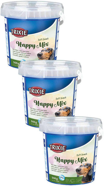 Trixie Soft Happy Mix további jellemzői: puha jutalomfalat bárányos, csirkés, lazacos ízesítés nem tartalmaz hozzáadott cukrot praktikus, visszazárható csomagolásban