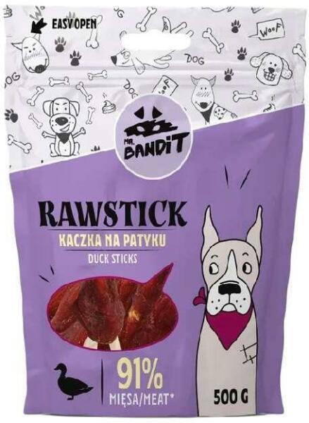 Mr. Bandit RAWSTICK kacsa pálcikák 500 gMr. Bandit húsos falat az édes bajkeverőnek! Veszélyesen finom, minden kisállat szívét elrabolja! LeírásFinom kacsamellhúsba csomagolt ropogós pálcika. A jutalomfalat kielégíti a természetes harapási vágyat, így egy bajkeverőből udvarias kutyus lehet. ÖsszetételKacsamell 59,9%, marhahús nyersbőr 32%, mogyorófehérje, glicerin. Adal