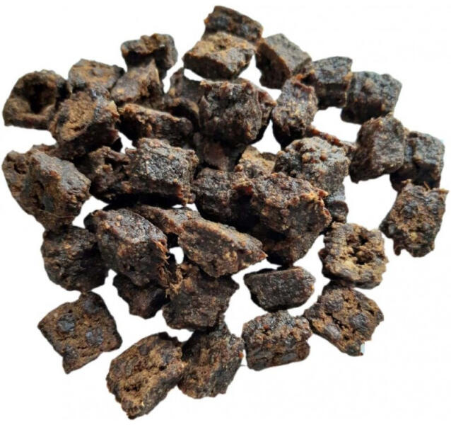 T ápláló, könnyen emészthető , és ígyideálistáplálékaz étkezések között. Finomanszárítottkülönleges eljárássalkészül. 100 %-ban természeteshús , színezékek éstartósítószerek hozzáadás nélkül. Összetevök: nyersfehérje 53,6%, nyerszsir 28,2%, Nyershamu: 6,3%, nedvesseg: 8,1%.
