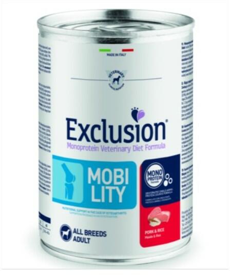 Diétás teljes értékű monoprotein összetételű nedves eledel az ízületi mozgékonyság javítására. Az Exclusion Diet Mobility Pork&rice egy teljesértékű diétás eledel felnőtt kutyák számára, melyet az ízületek támogatására fejlesztettek ki. Ez a komplett diétás eledel válogatott forrásból származó fehérjéket és szénhidrátokat tartalmaz. MONOPROTEIN FORMULA: