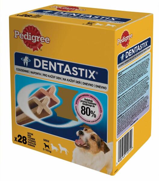 Fogápoló rágósnack a Pedigree-től, kis és nagy kutyáknak egyaránt ideális, speciális textúrájának és tisztító aktív anyagainak köszönhetően. Mindennapos használata segít megõrizni kutyája fogainak és ínyének egészségét. A Pedigree® DentaStix® finoman dörzsölõ felületének és egyedi formájának köszönhetõen akár 80%-kal csökkenti a fogkõ kialakulását,
