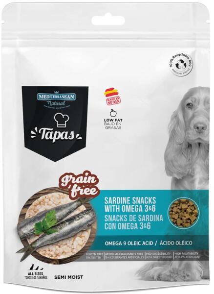 Összetétel: 45% szardínia, 15% serrano sonka, 14% pulykahús, növényi glicerin, burgonyakeményítő, csicseriborsó, szárított sárgarépa, napraforgóolaj, jukkalé, ásványi anyagok. Adalékanyagok: propionsav, kalcium-formiát, citromsav. Antioxidánsok: tokoferol kivonat. Ízesítő vegyület: rozmaring, Etetési útmutató: adjuk nagyszerű jutalomként kiképzés vagy játék során