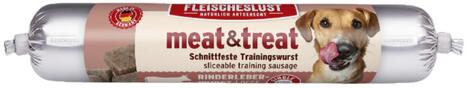 Összetétel : 65% marhahús (máj, hús, tüdő, vese, szív), 8% burgonyakeményítő, 8% répapép, 4% durumbúza daraAnalitikai összetevők: Nyersfehérje: 12,9%, nyers zsír: 5,9%, nyershamu: 2,2%, nyersrost: 6,0%, nedvességtartalom: 62,1%513 kJ / 100 g (123 kcal) Kiszerelés: 80 g A meat & trEat jutalomfalatok nem helyettesítik a teljes értékű táplálkozást!