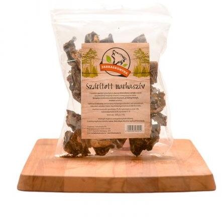 100% szárított marhaszív - természetes jutalomfalat, rágcsálnivaló. 100%-ban természetes, nem tartalmaz mesterséges színezéket, tartósítószert, ízfokozókat, aromákat. . Néhány cm széles darabokra vágva. A kíméletes, alacsony hőmérsékleten történő szárításnak köszönhetően jól megtartja vitamin és ásványi anyag tartalmát. Támogatja a természetes emésztési