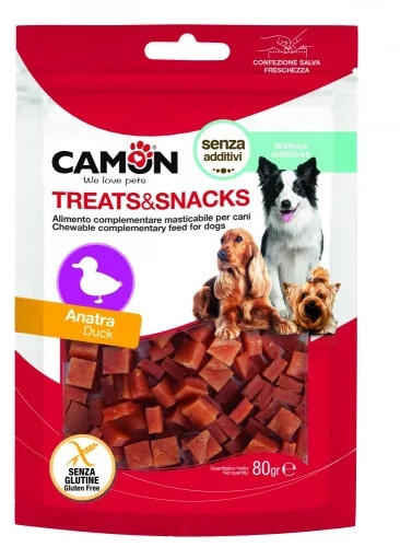 Kacsás kockák, adalékanyagok nélkül. Gluténmentes jutalomfalat kutyák számára. Nettó 80 gramm. Összetétel: kacsahús 91%, borsófehérje, kukoricakeményítő, glicerin, szorbitol. Használati útmutató: 4 hónapnál fiatalabb kutyák számára nem ajánlott. Ajánlott napi fogyasztási mennyiség: 1-20db (1db 0,8 gr), az eb mérete alapján határozza meg a mennyiséget. Analitikai