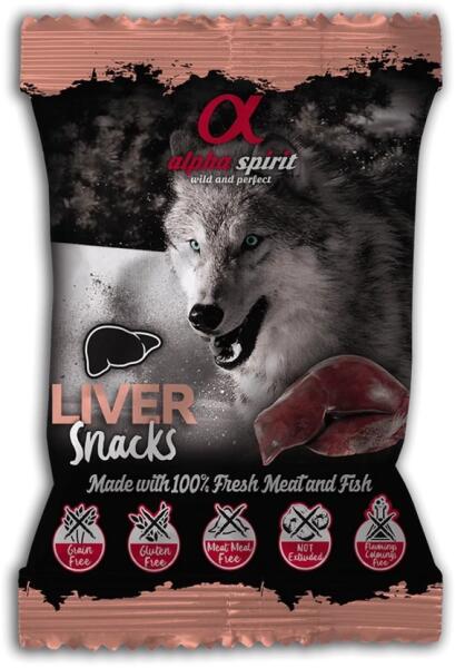 ALPHA SPIRIT SNACKS ● MÁJAS JUTALOMFALAT KUTYÁKNAK - 50GHiszen egy vérbeli gazdinál mindig van néhány jutalomfalat! Az Alpha Spirit Snacks májas falatkáival bármikor elcsábíthatod kedvenced. Csakis természetes összetevőkből készül és pompásan zamatos - ennek egyszerűen nem lehet ellenállni!Tréningek, trükkök vagy kutyasuli? A kis adagoknak hála könnyedén magaddal vihet